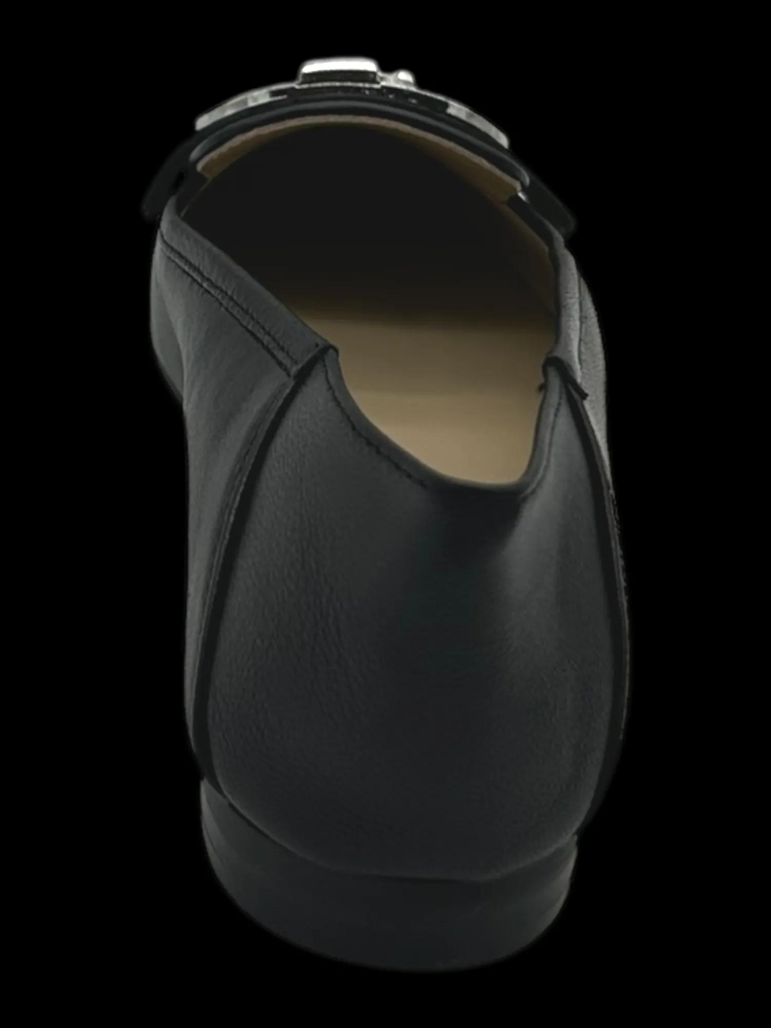 Ballerina bassa in morbida pelle decorata con logo frontale a rilievo, altezza 2 cm.