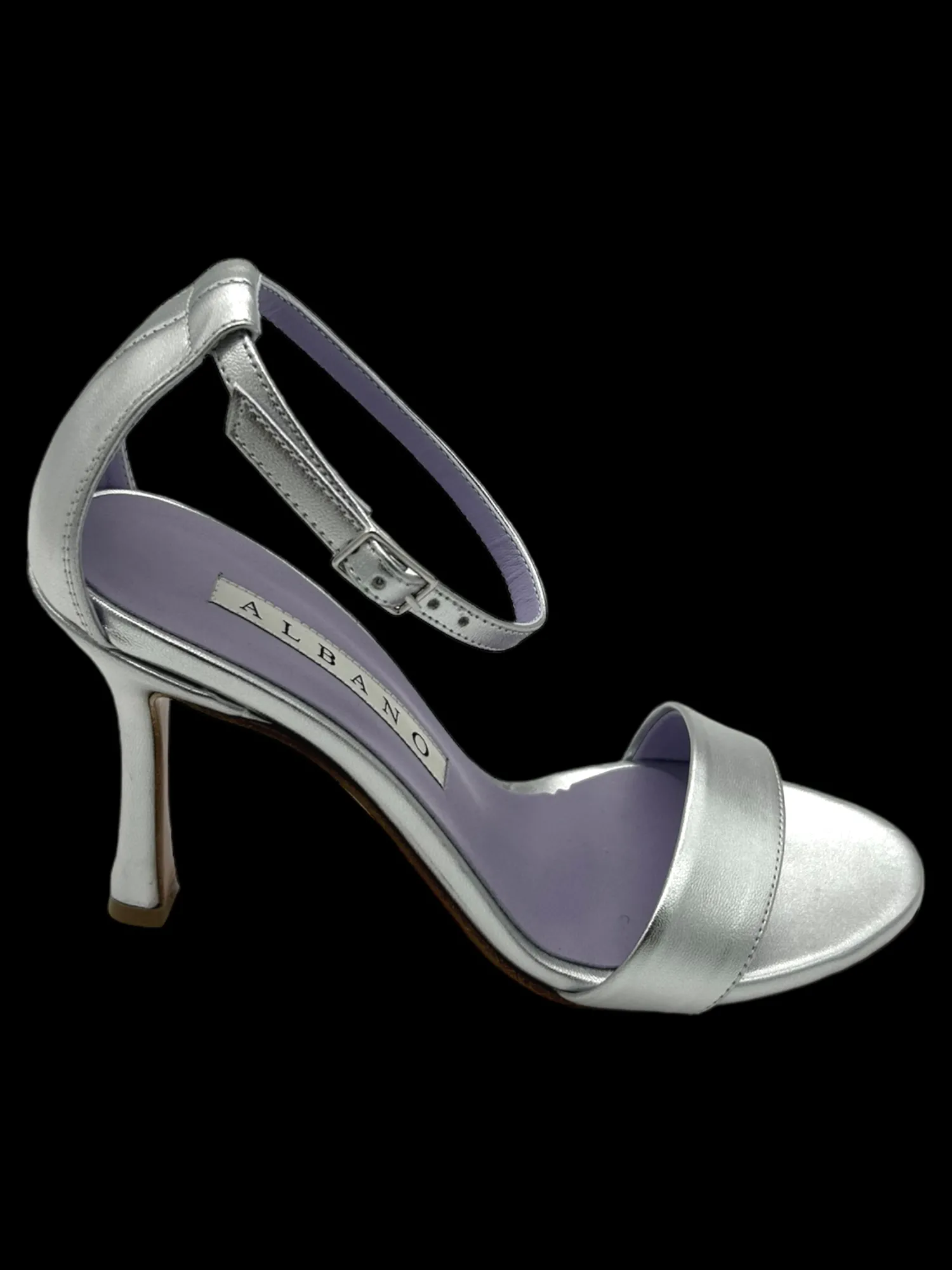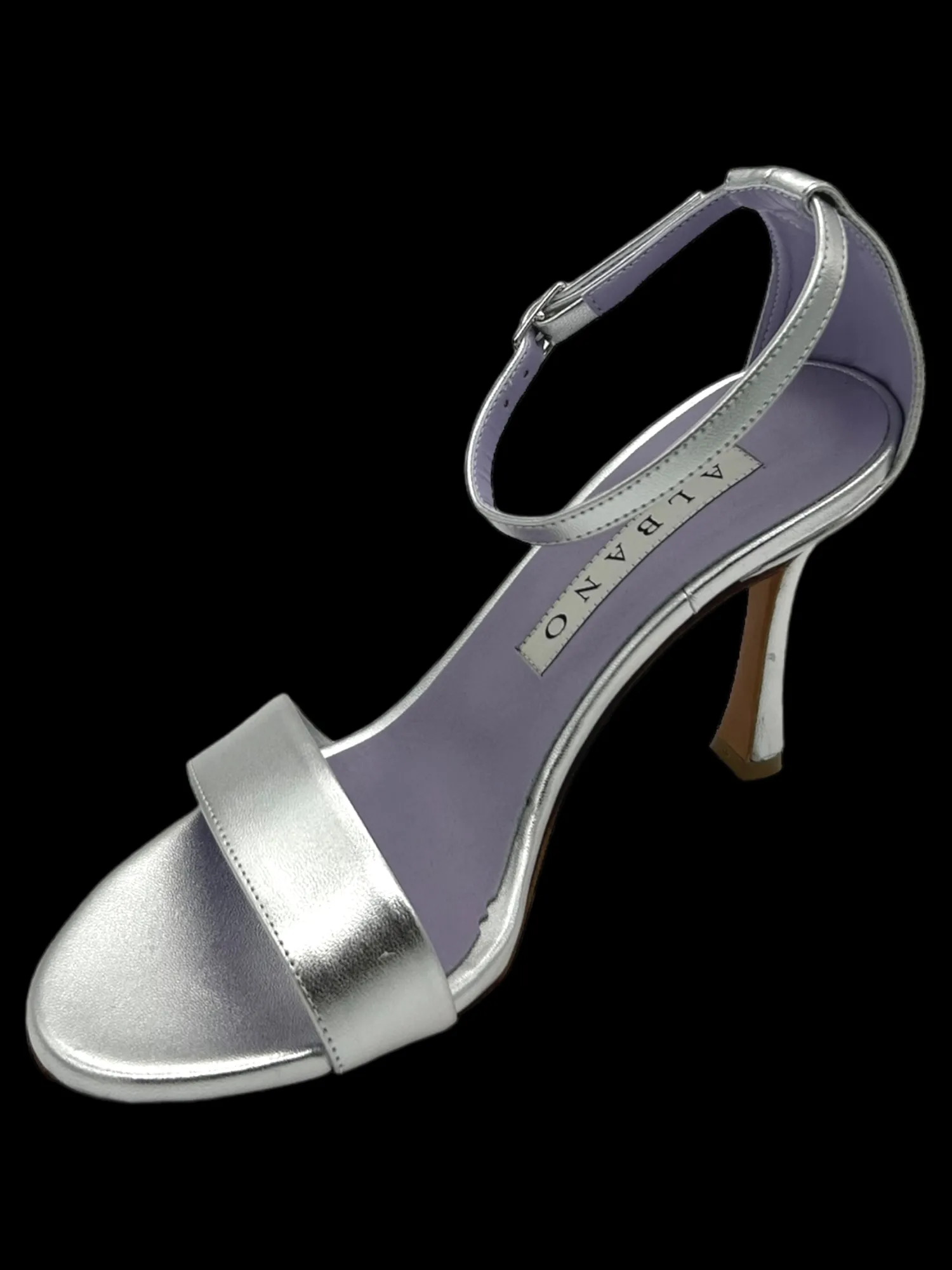 Sandalo Metallizzato Argento con cinturino regolabile alla caviglia, tacco 8,5 cm plateau 1,5 cm. Modelli esclusivi per le più esigenti attitude che interpretano una femminilità complessa e multi sfaccettata, sempre ammaliatrice, il leitmotiv di serate mondane, aperitivi informali, riunioni di lavoro. Made in Italy.