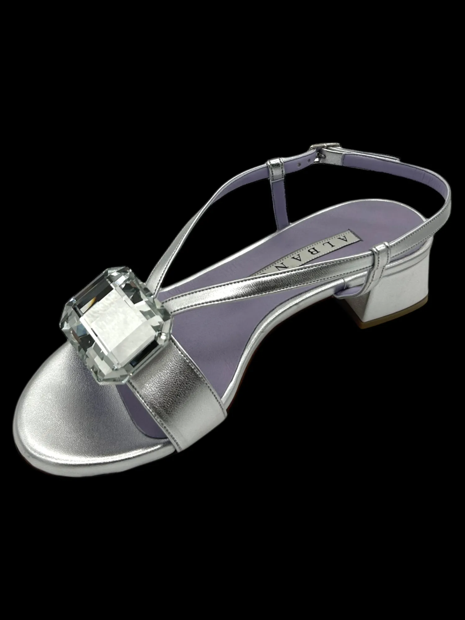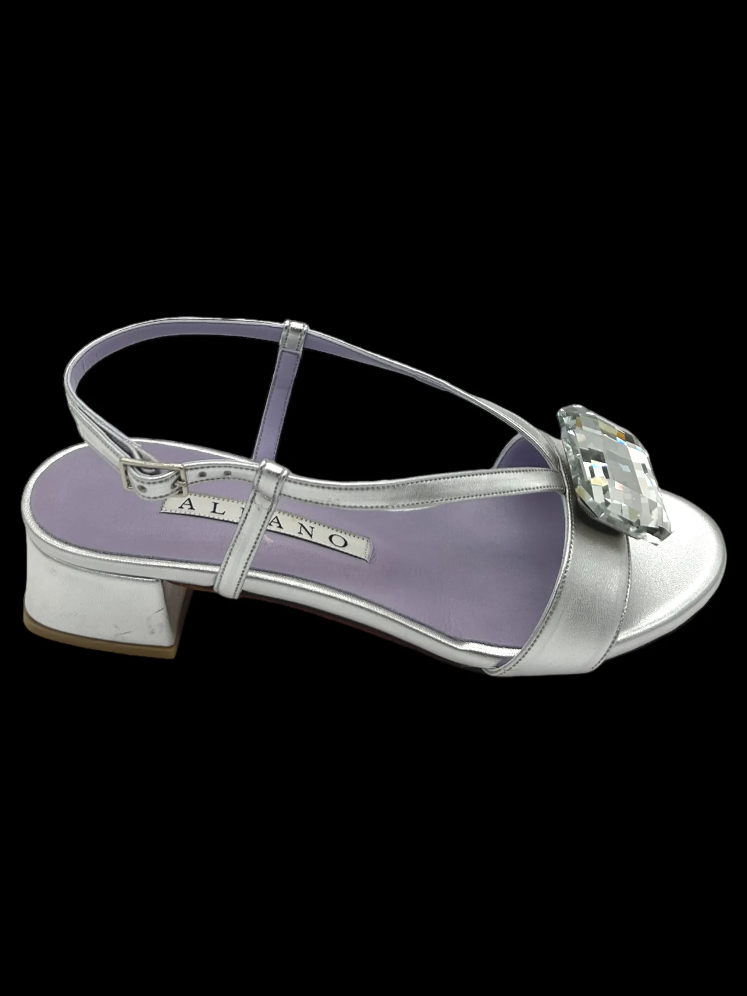 Sandalo basso metallizzato argento con cinturino regolabile alla caviglia e decorazione, tacco 4 cm. Modelli esclusivi per le più esigenti attitude che interpretano una femminilità complessa e multi sfaccettata, sempre ammaliatrice, il leitmotiv di serate mondane, aperitivi informali, riunioni di lavoro. Made in Italy.
