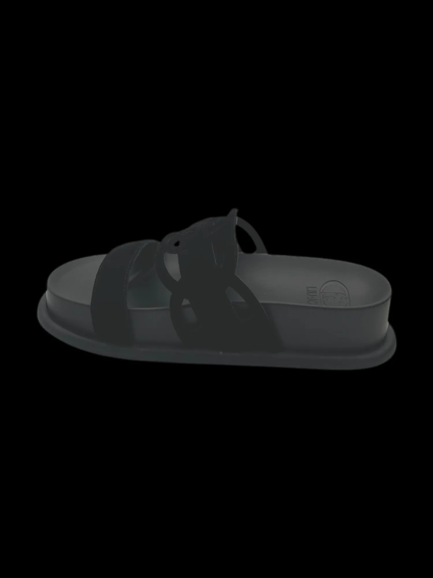 Sandalo basso fussbett con doppia fascia intagliata di colore black, altezza 3.5 cm, sono perfetti per ogni occasione estiva.