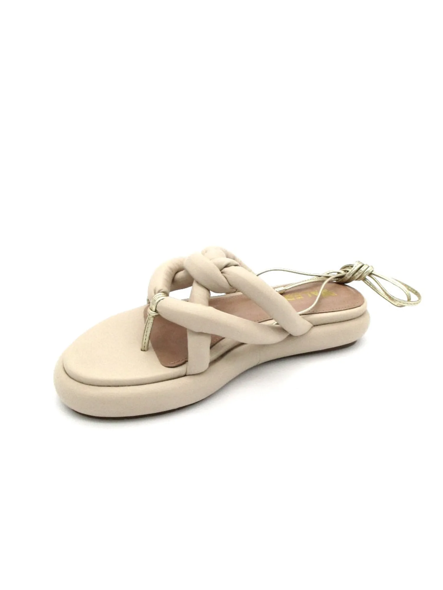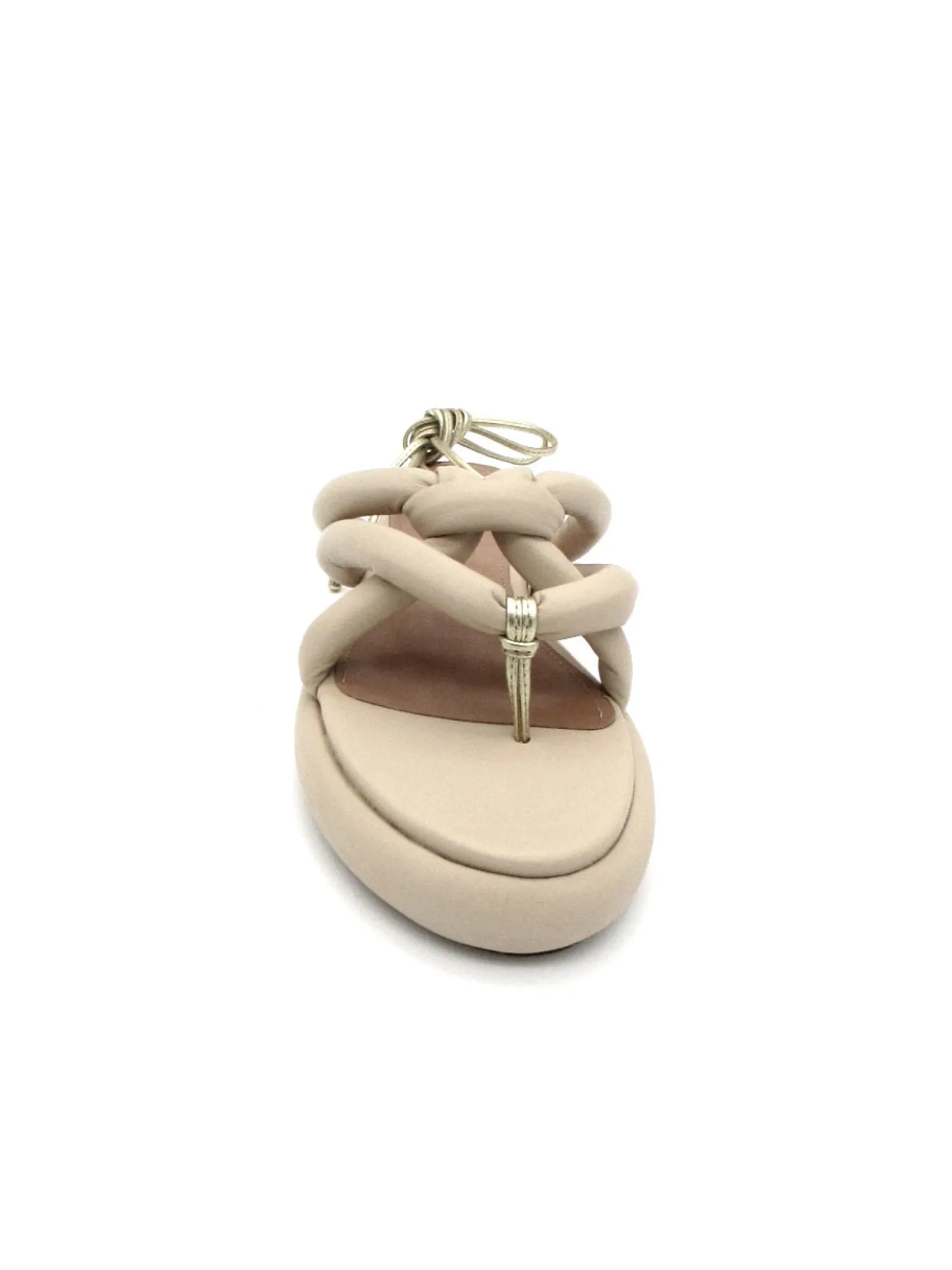 Sandalo basso a infradito con fondo comodo, in pelle con nodi sul collo del piede e allacciatura alla caviglia alla schi…