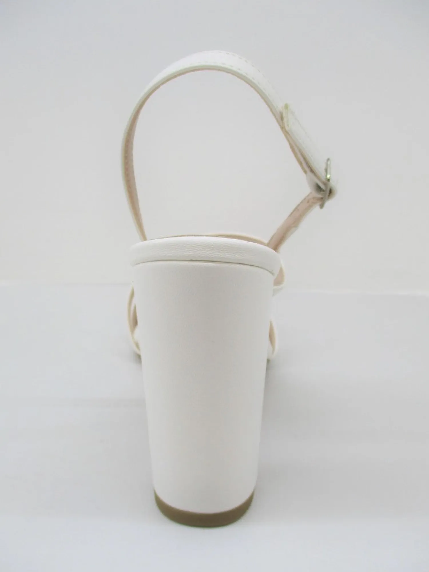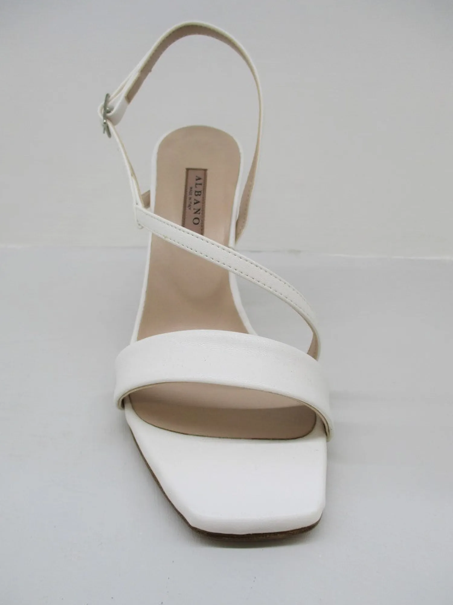 Sandalo colore bianco in pelle con piccola fascia sul collo del piede, tacco largo cm 10, plateau cm 1 colore bianco