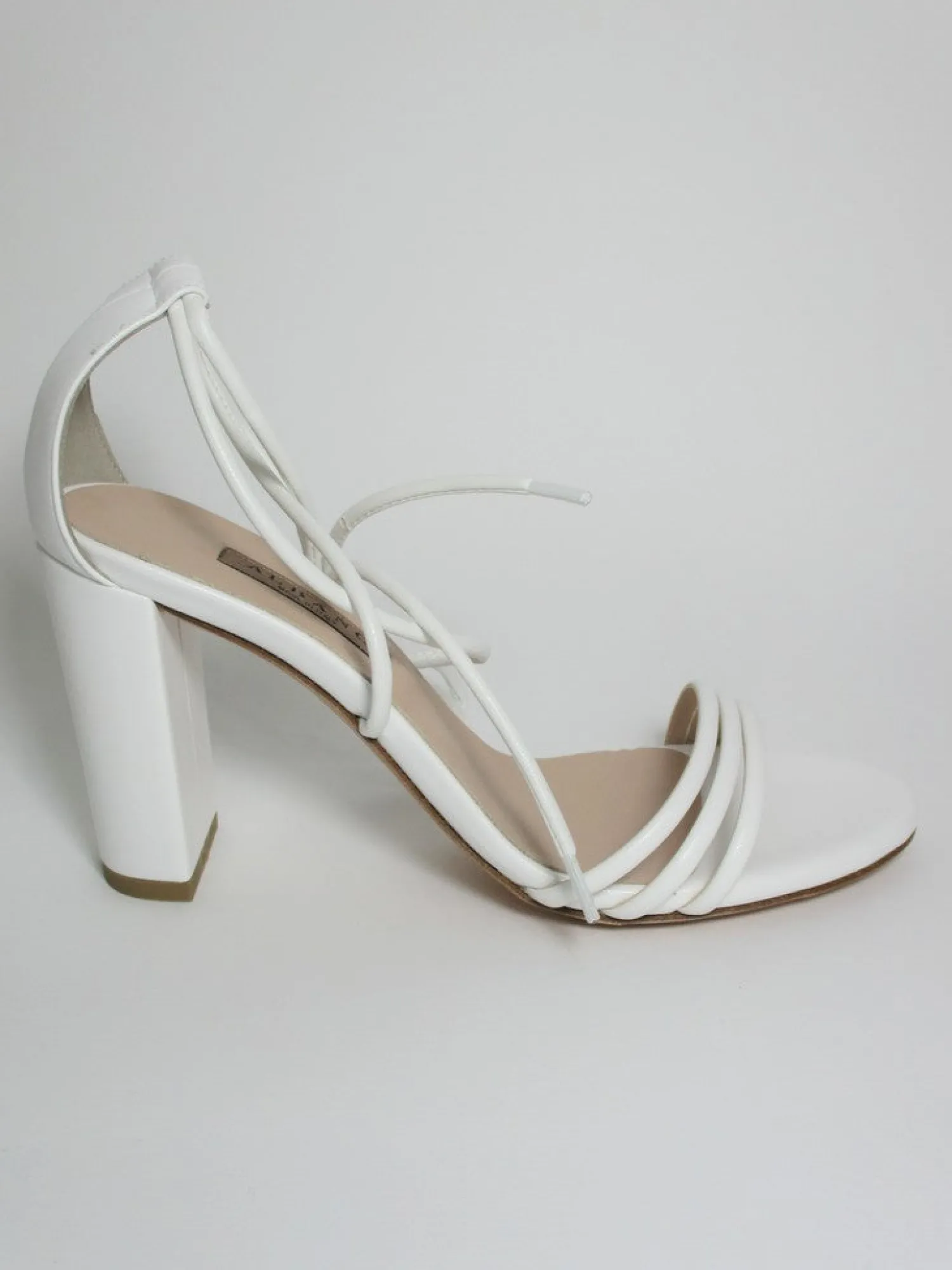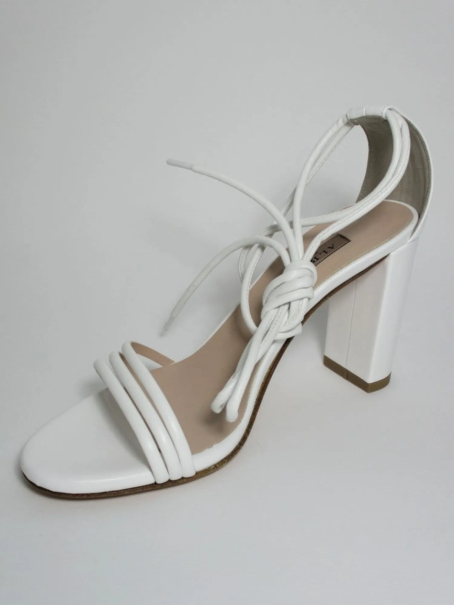 Sandali da donna Albano modello 8078 fatti in pelle con cinturini alla caviglia. Colore bianco, fondo in cuoio. Tacco alto 9cm. Comodi ed eleganti.