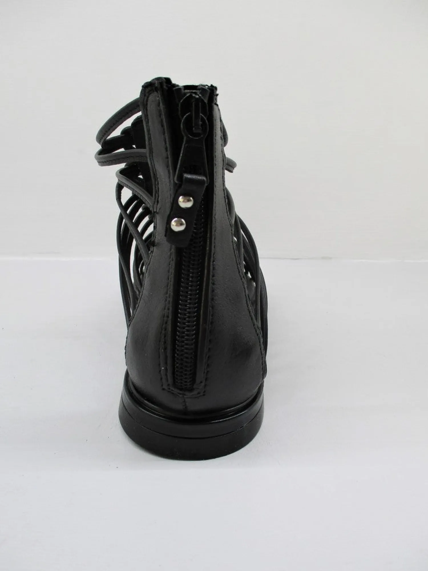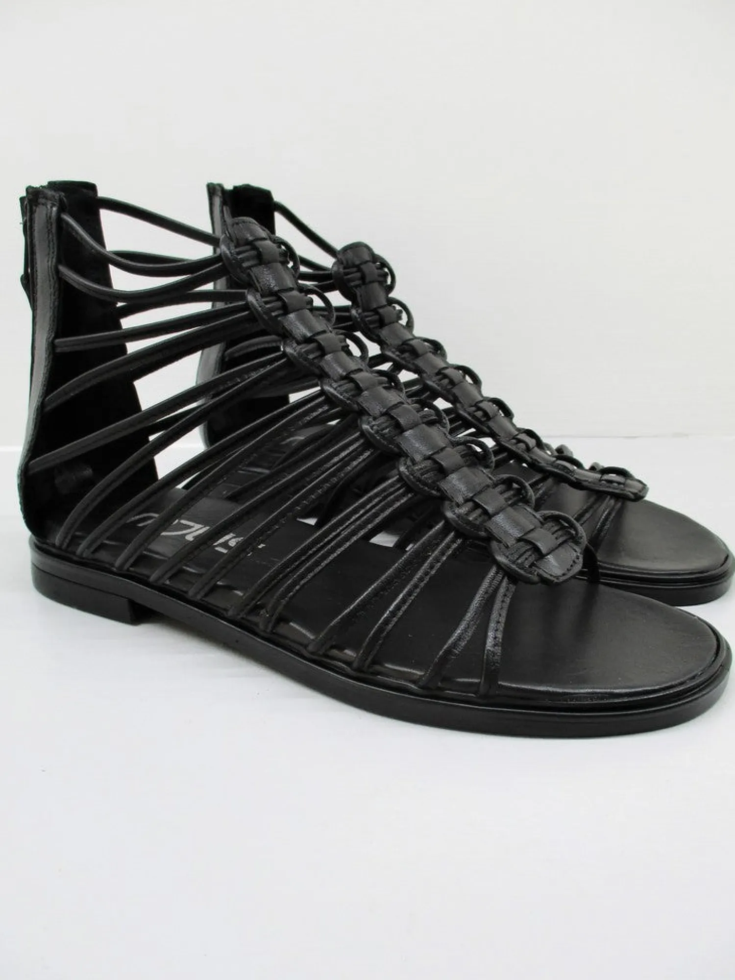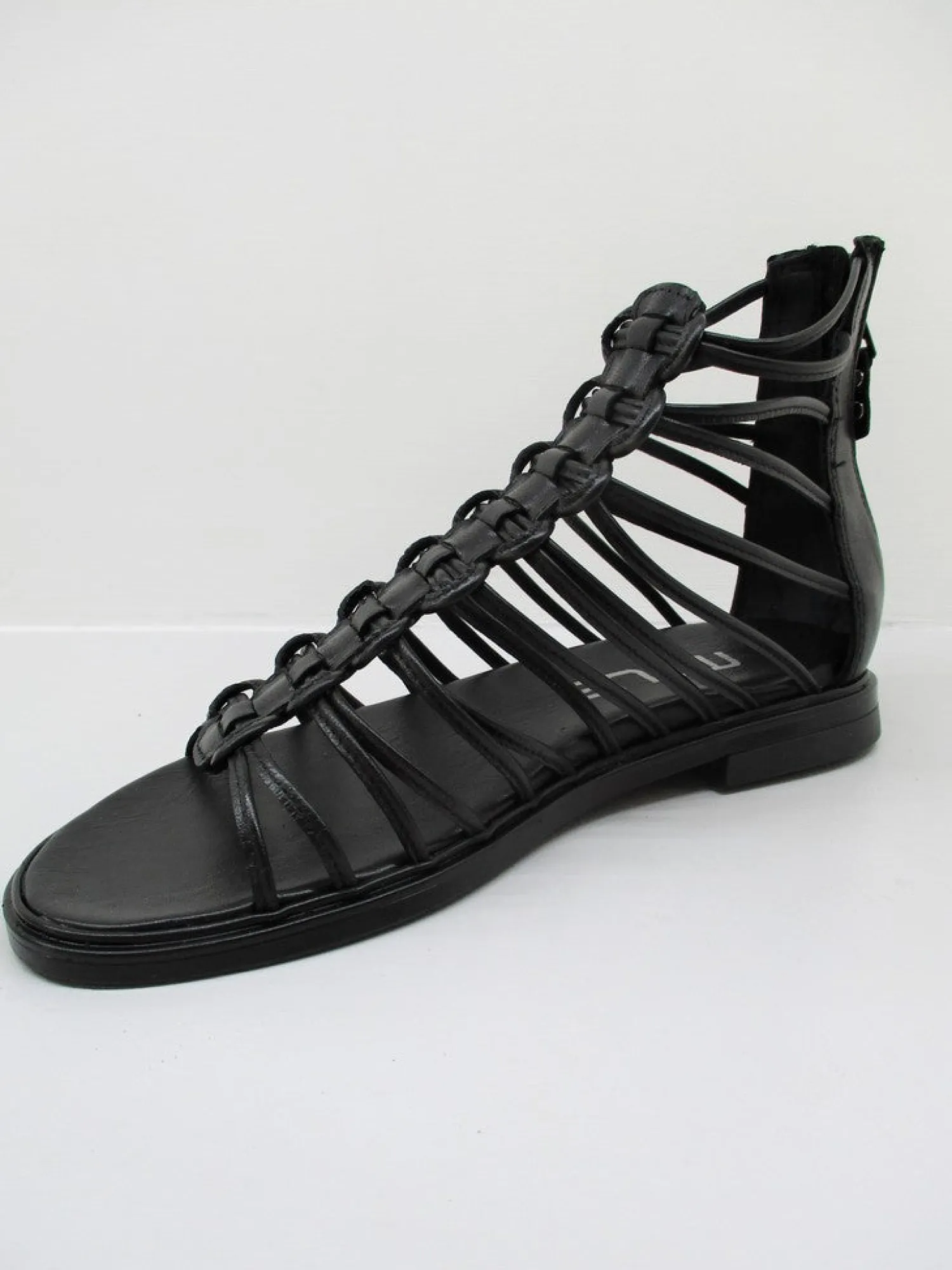 Sandalo basso in pelle con fascette, chiusura cerniera posteriore, colore nero