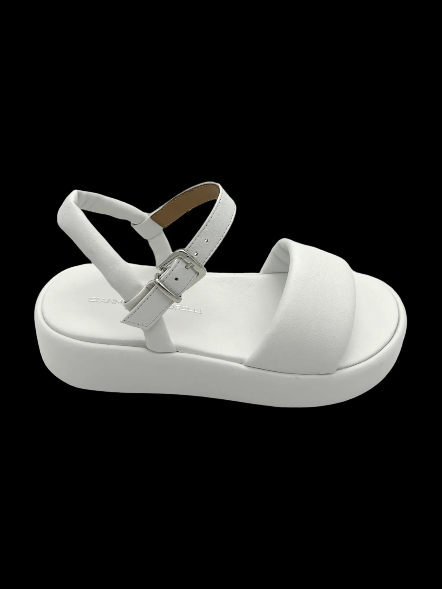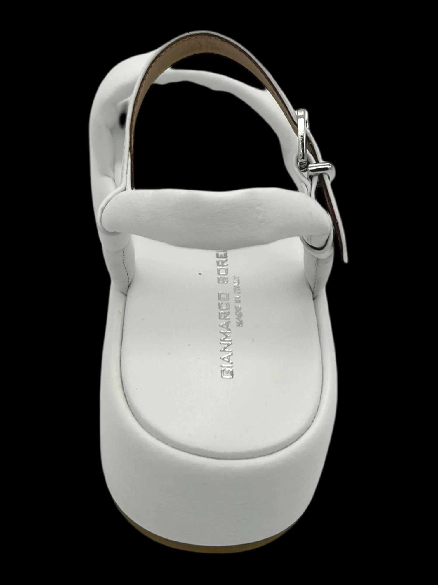 Sandalo in morbida pelle colore Bianco con cinturino alla caviglia regolabile, zeppa di 5 cm e plateau di 3.5 cm. Made…
