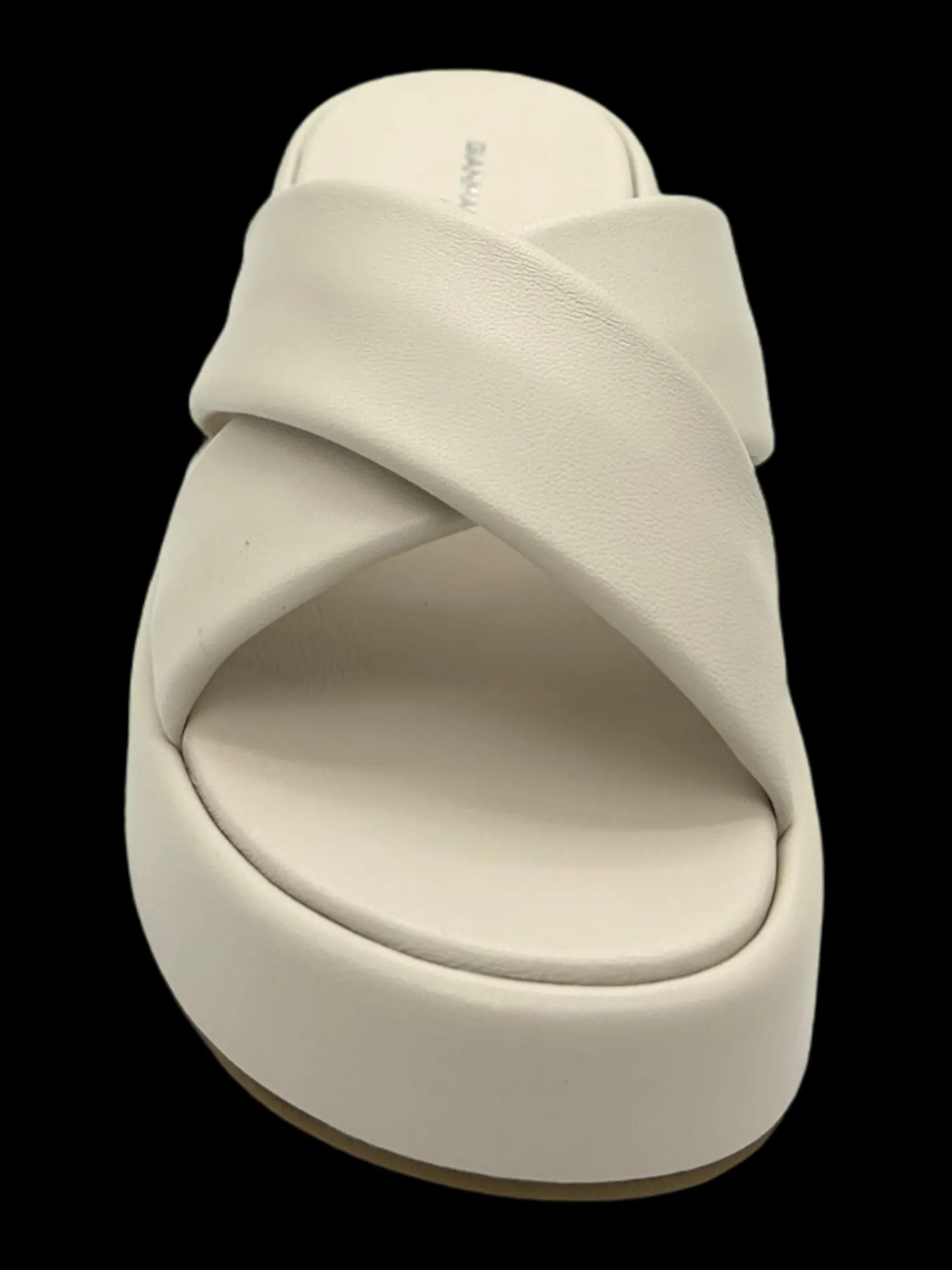 Sandalo a ciabatta in morbida pelle colore Softy Milk appartenente alla famiglia Yury, zeppa di 5 cm e plateau di 3.5 cm. Made in Italy di qualità artigianale.