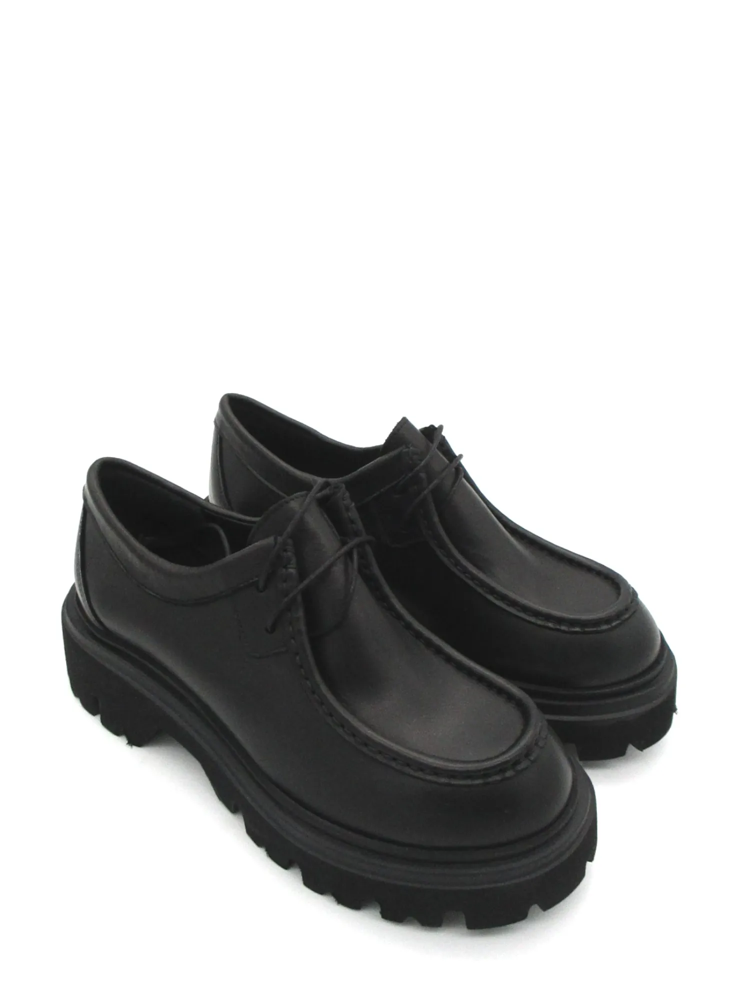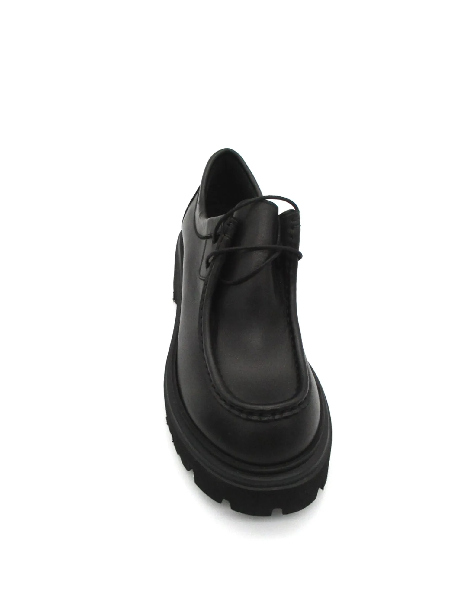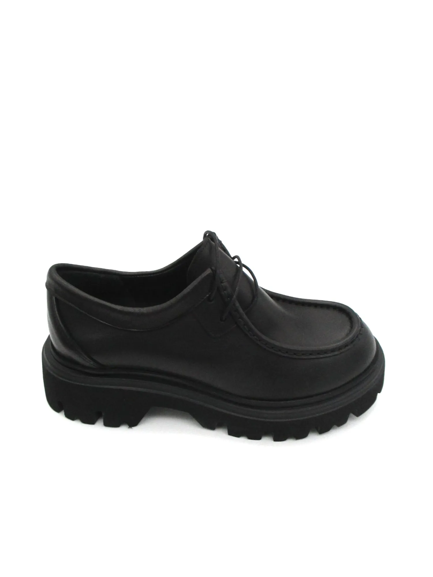 Scarpa in morbida pelle modello ingegnere con allacciatura frontale, suola in gomma in micro leggera a carrarmato tacco 5 cm tutto made in Italy.