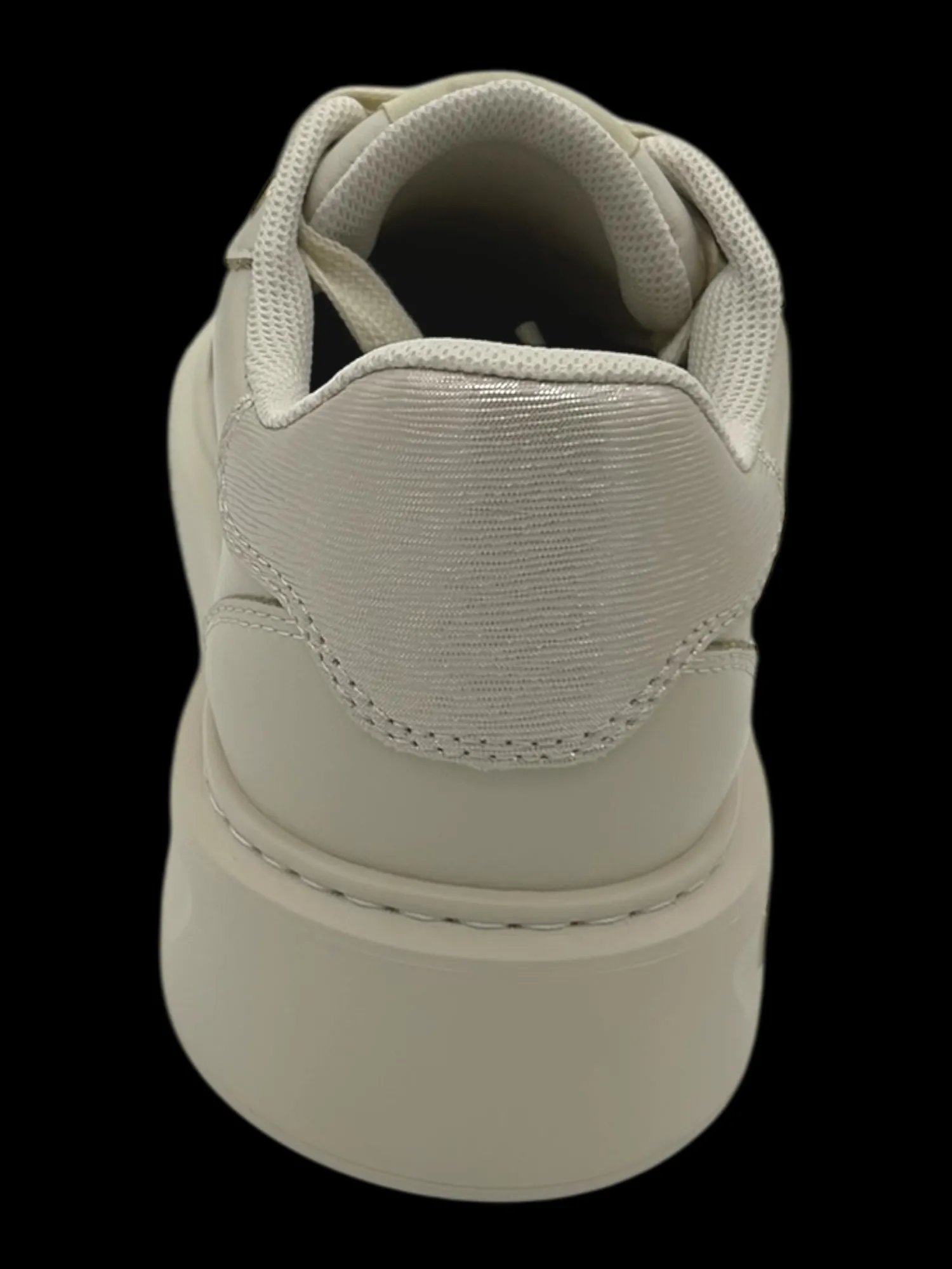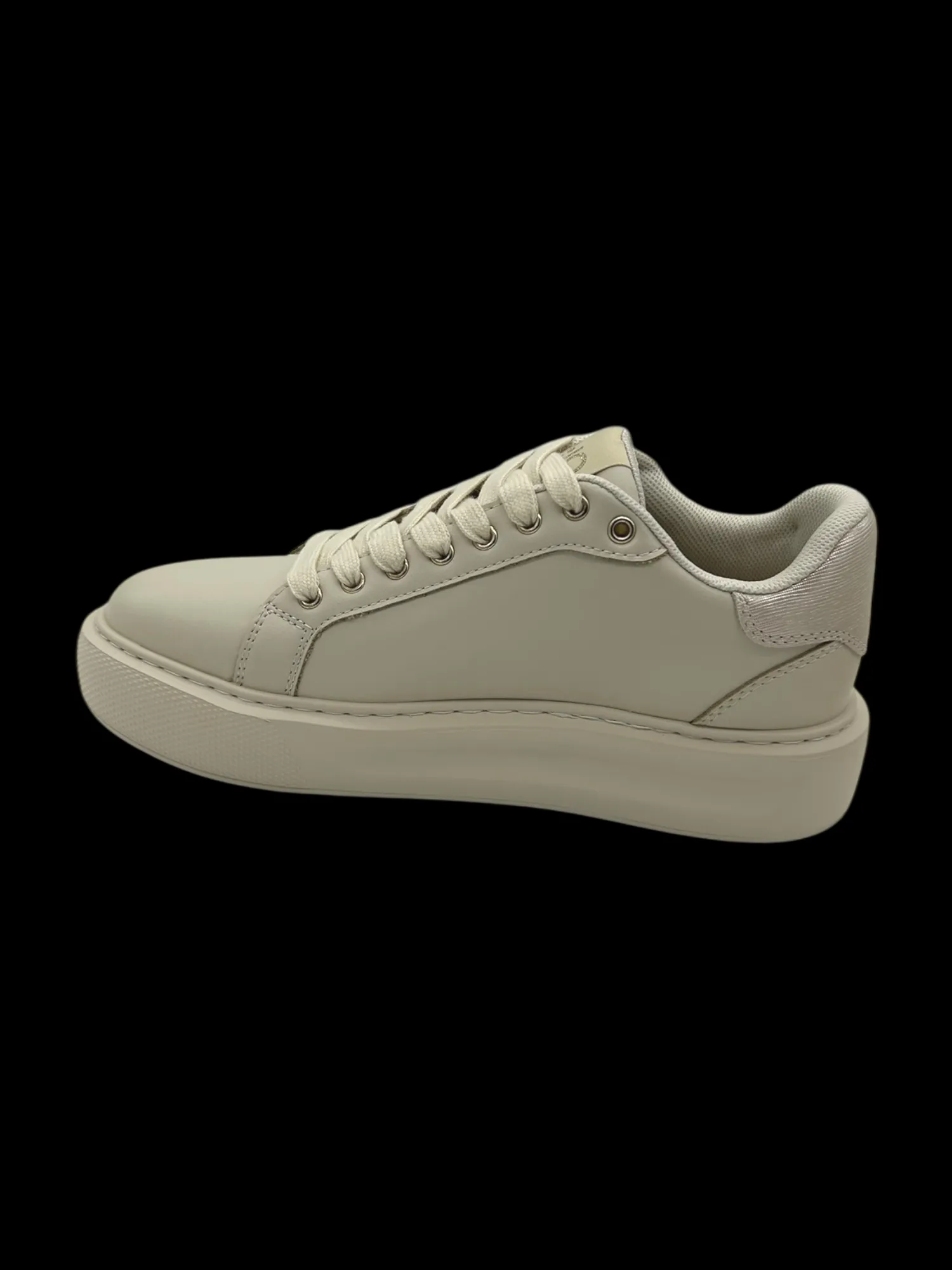 Sneakers leggerissima con tomaia in pelle colore Beige e logo stampato laterale, altezza suola 4 cm.