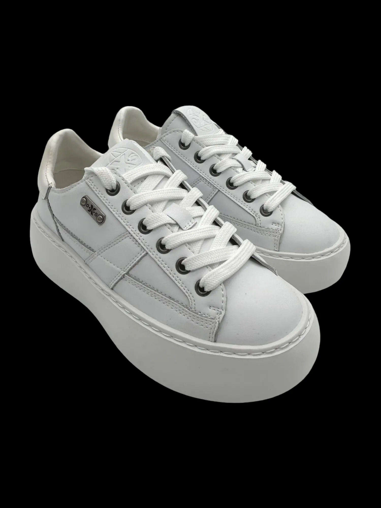 Sneakers da donna Humber in pelle White in una versione urbana dal look minimalista, tomaia realizzata in tela di cotone con le cuciture a vista che ricordano l’iconico Frank , presentano una spessa suola chunky in EVA che rende la sarpa estremamente leggera e sono rifinite con con l’inconfondibile logo sui contrafforti e le linguette.
