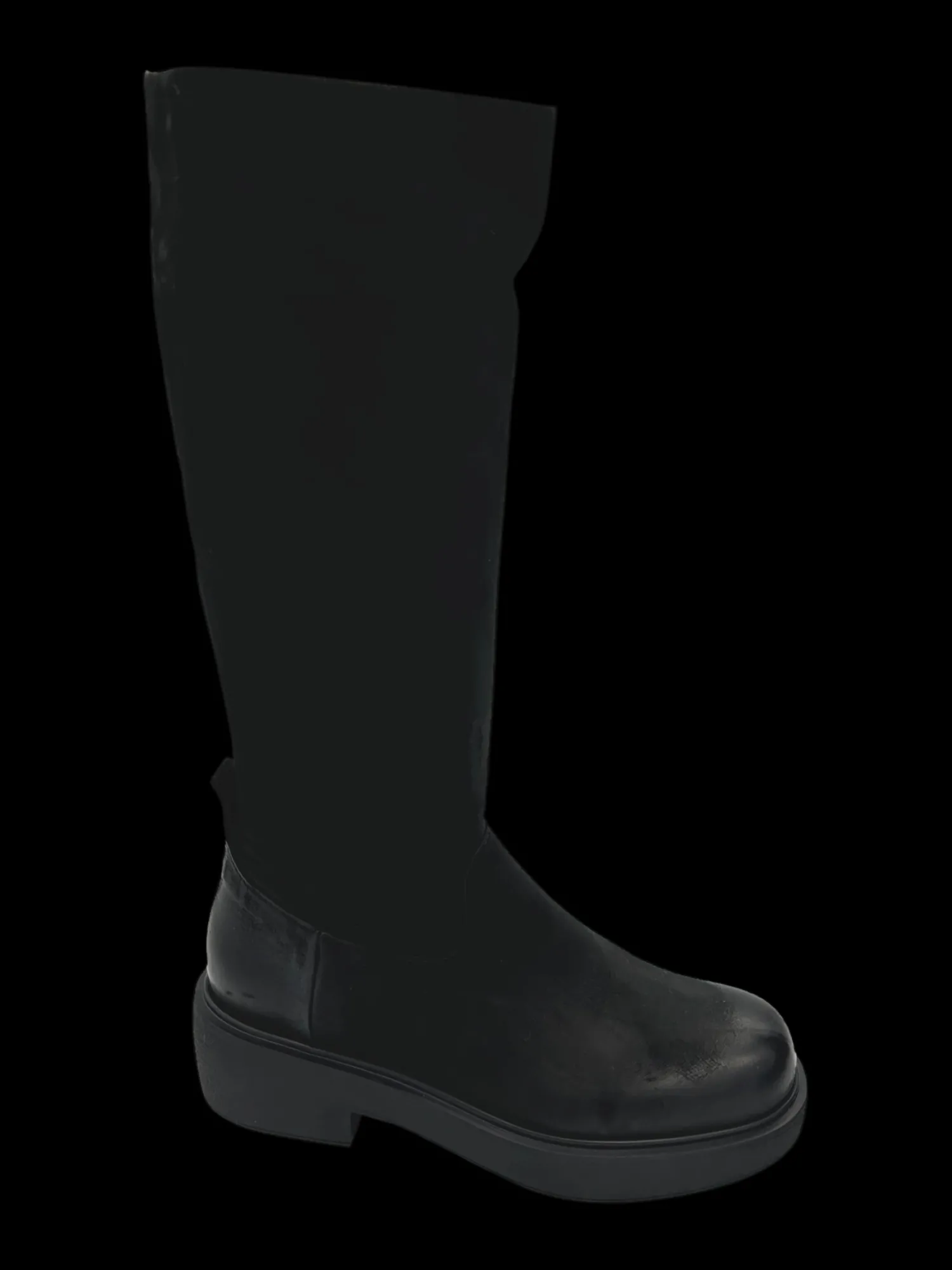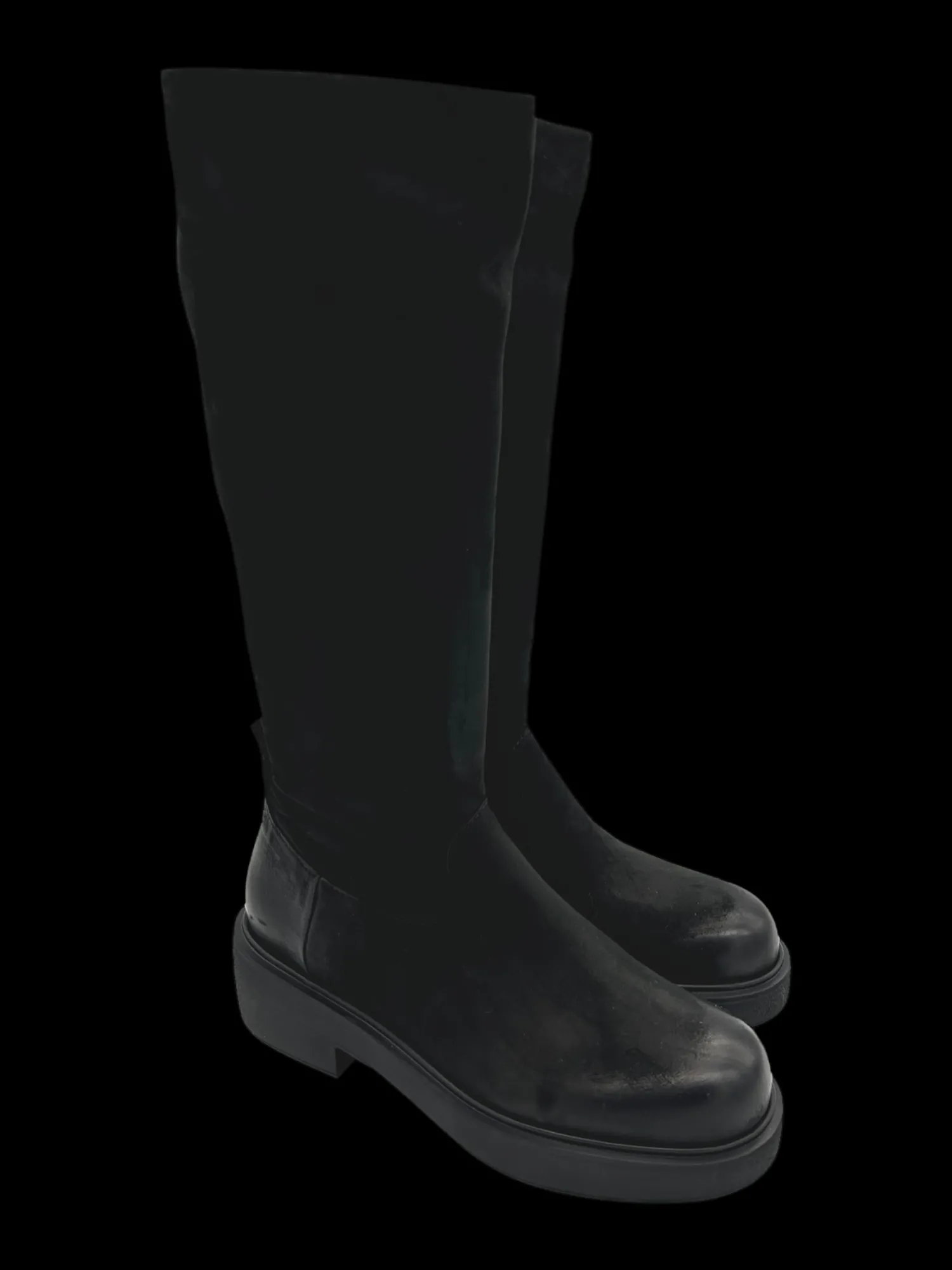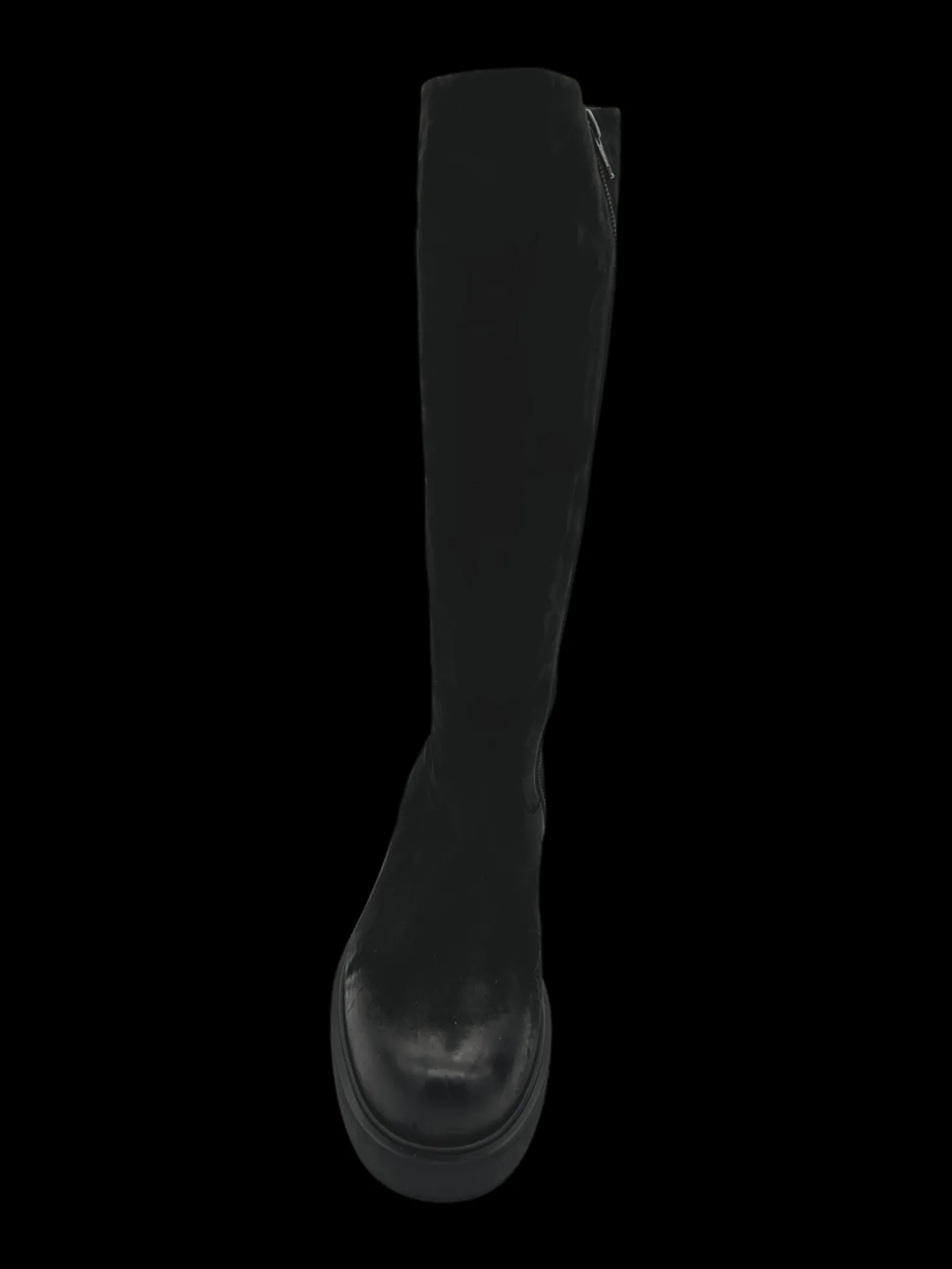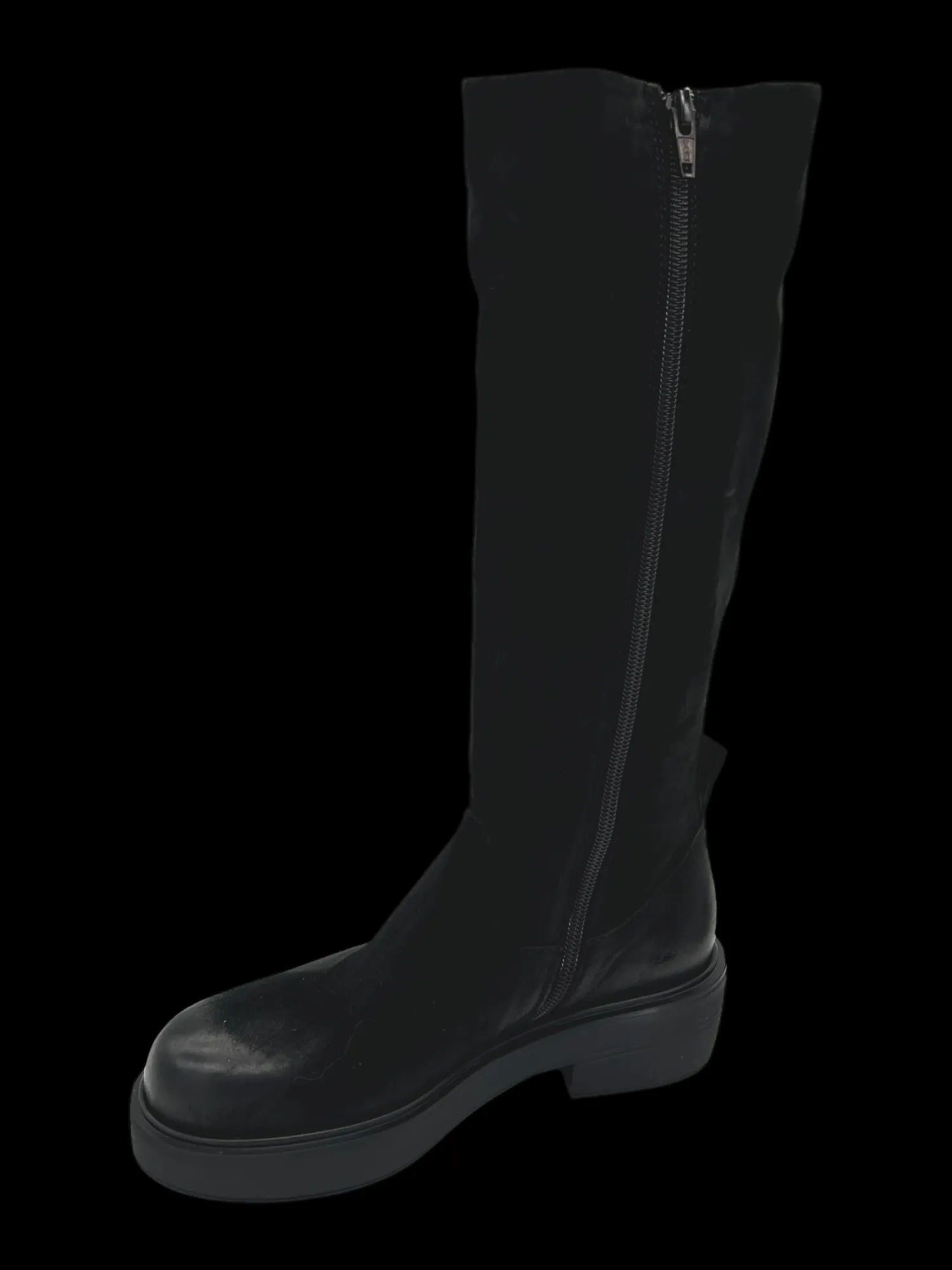 Stivale pelle scamosciata donna Black con chiusura a zip interna e punta arrotondata per uno stile grintoso, altezza tacco cm 5 e gambale 34,5 cm.