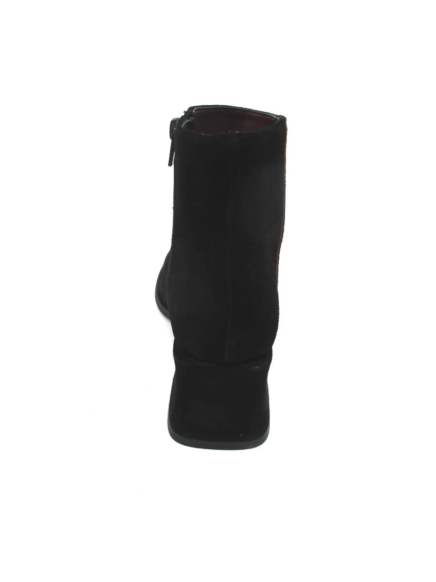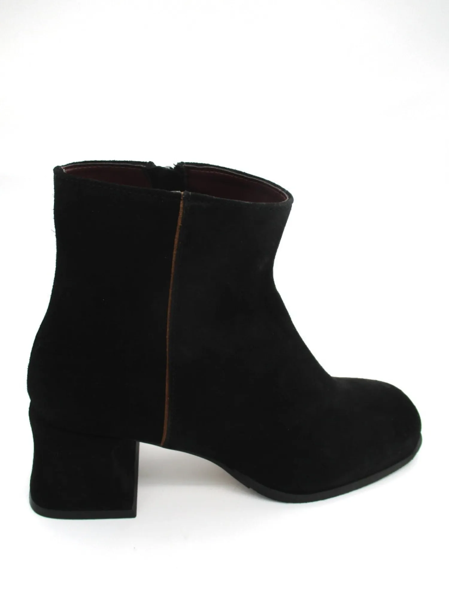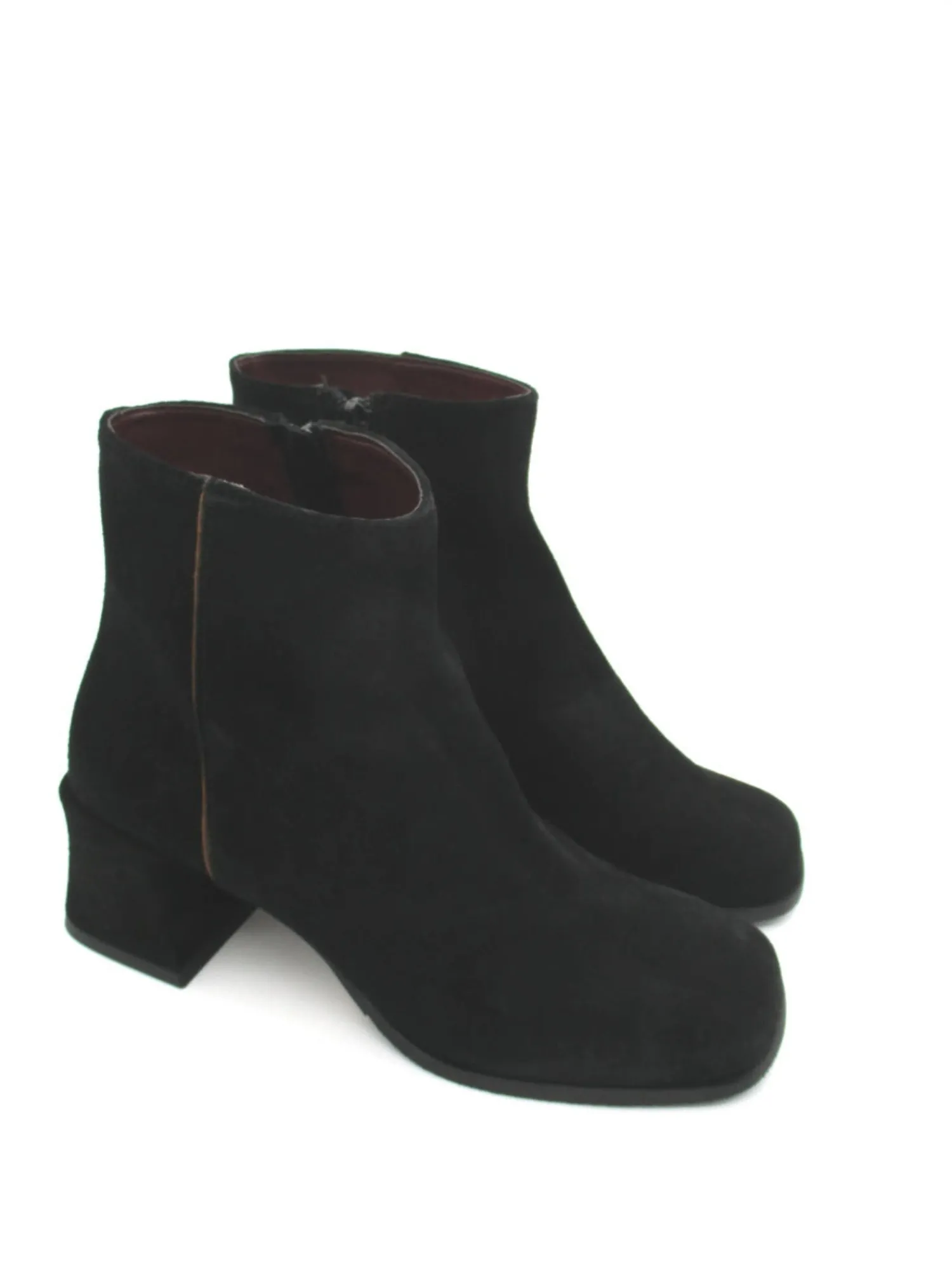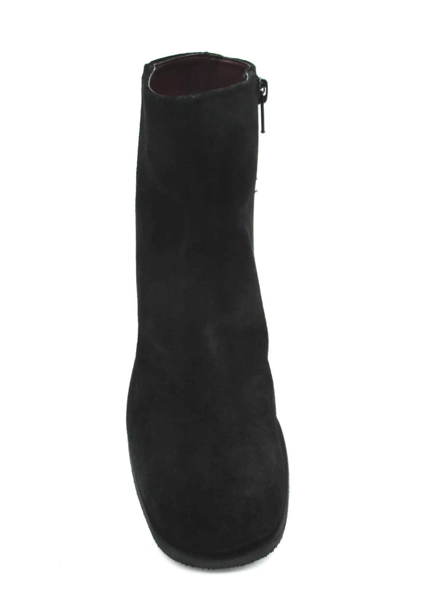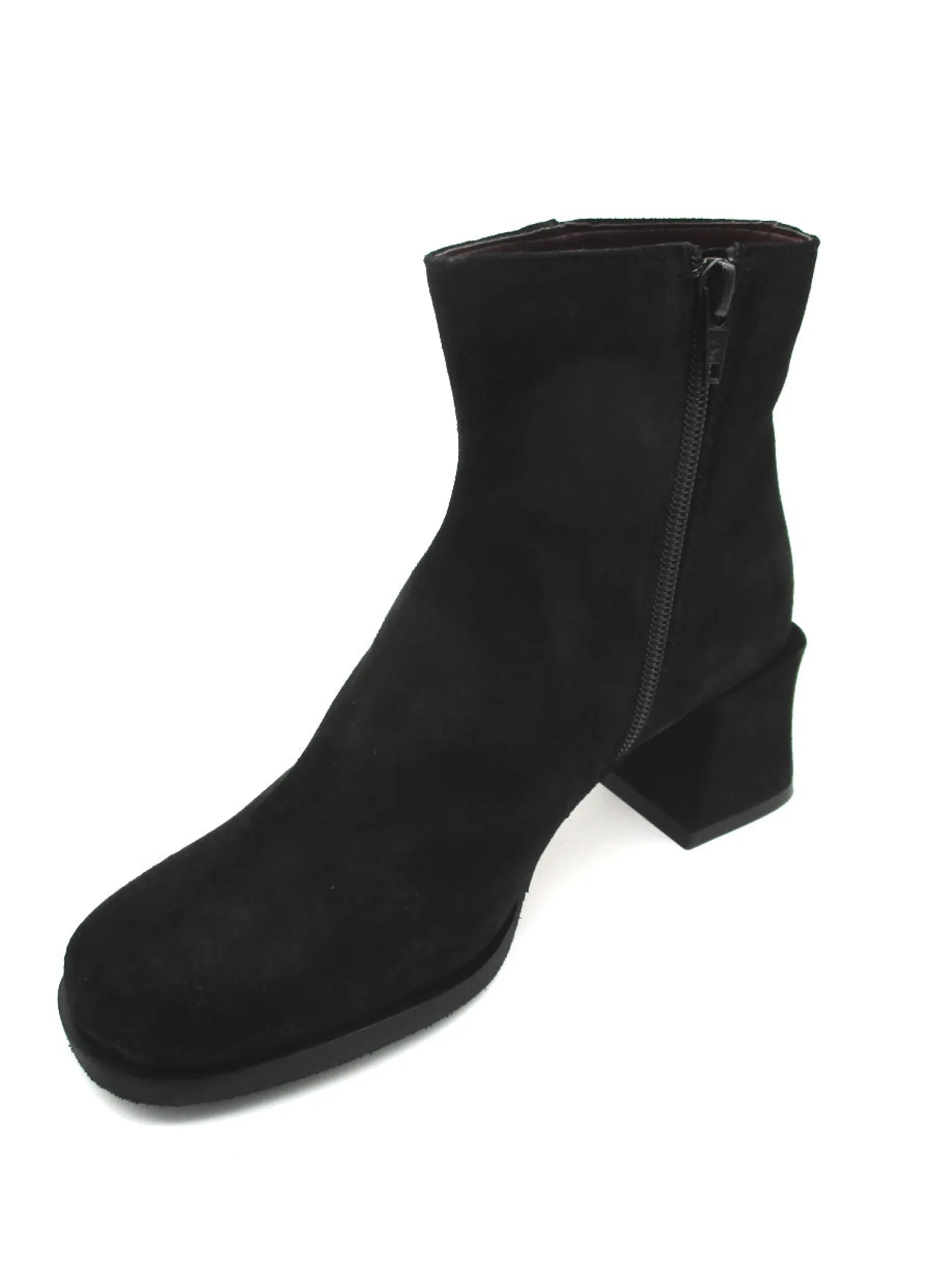 Stivaletto in camoscio con chiusura a lampo nel lato interno, fondo in gomma. Altezza tacco 6 cm. Colore nero.