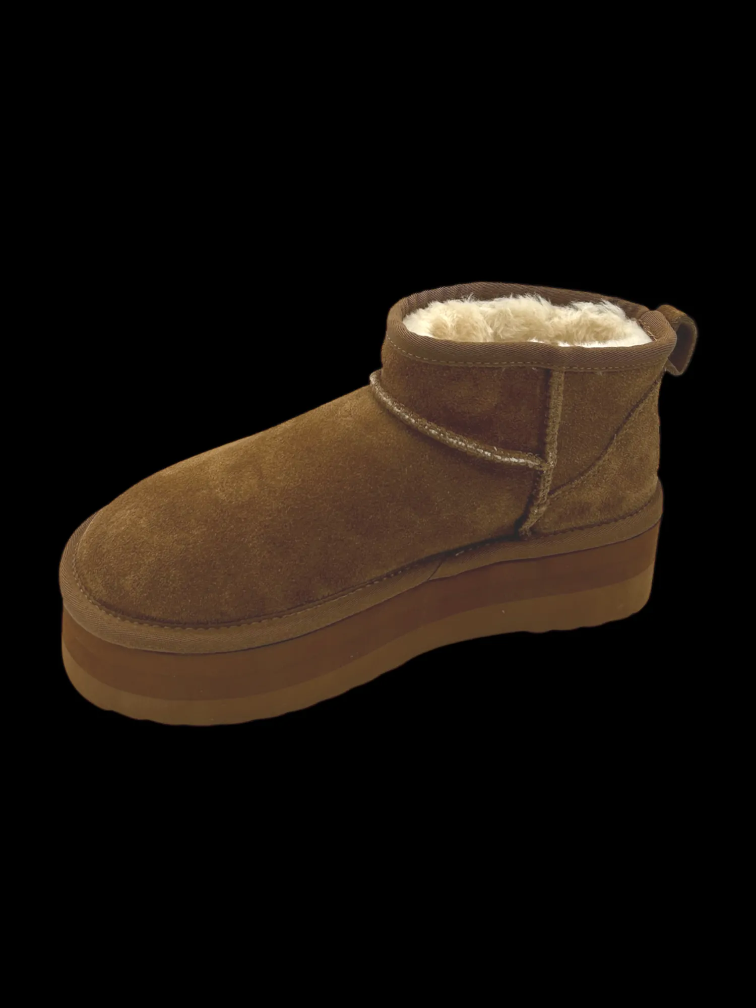 Stivaletto imbottito Cuoio con tomaia in camoscio e cuciture a vista, suola platform in gomma altezza 5 cm.