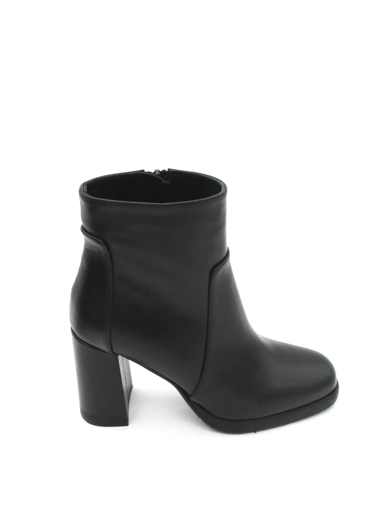 Stivaletto pelle nero con lampo laterale per una chiusura rapida, plateau altezza tacco 8,5 cm e parte anteriore 1,5 cm. 100% Made in Italy