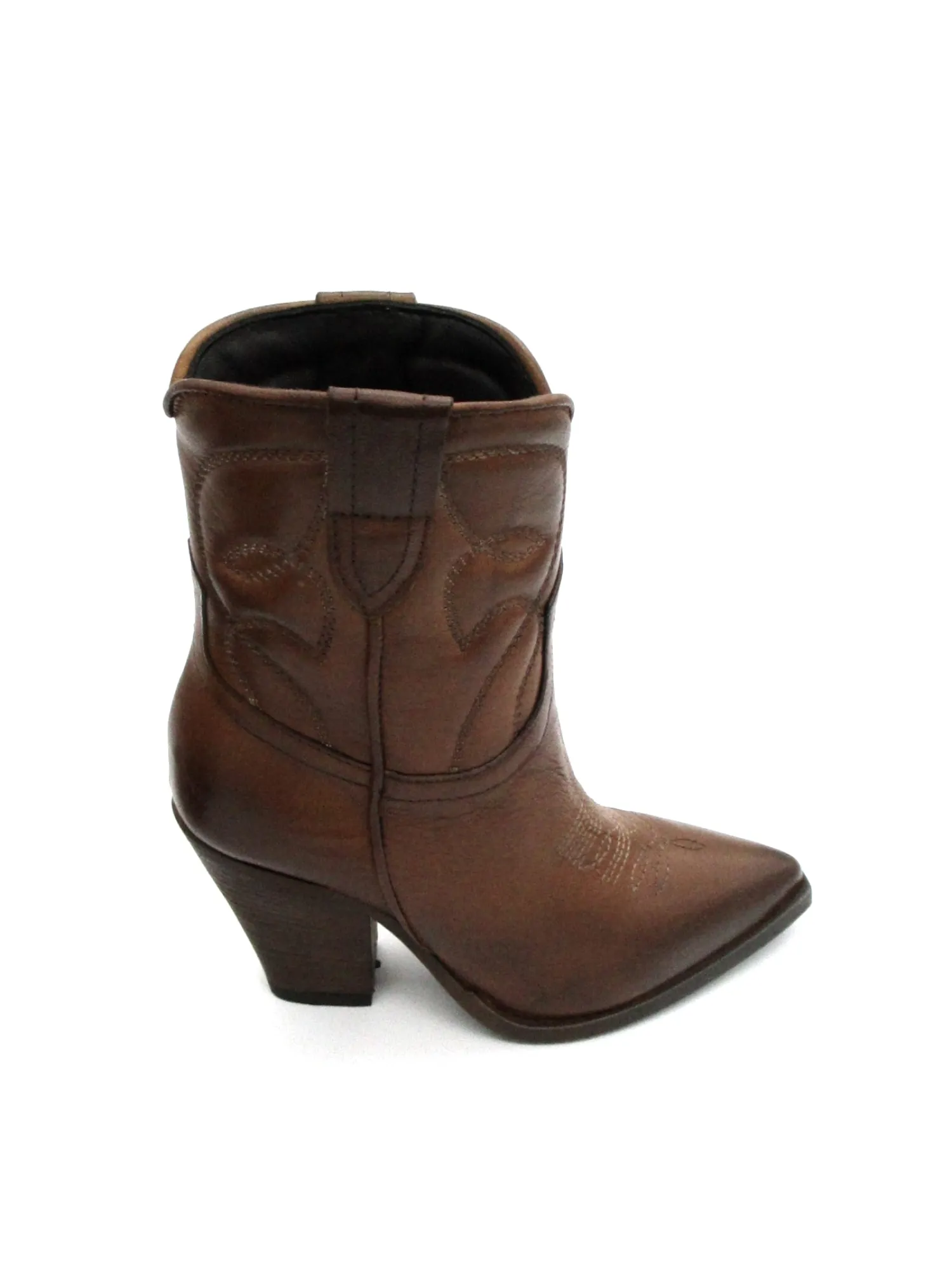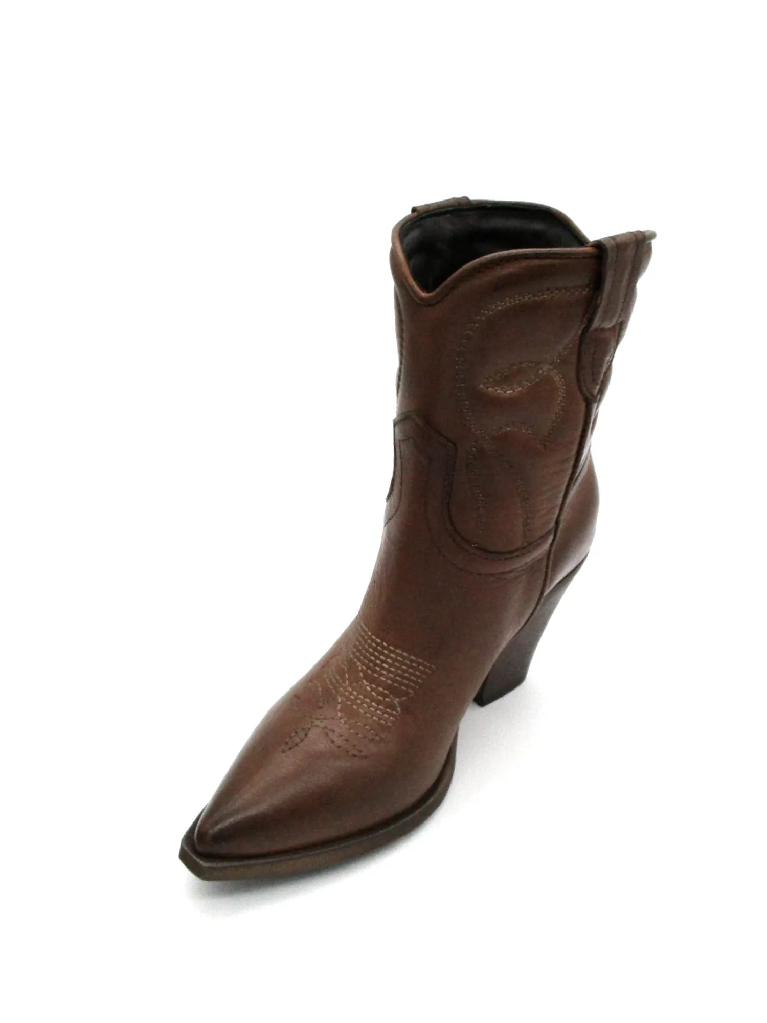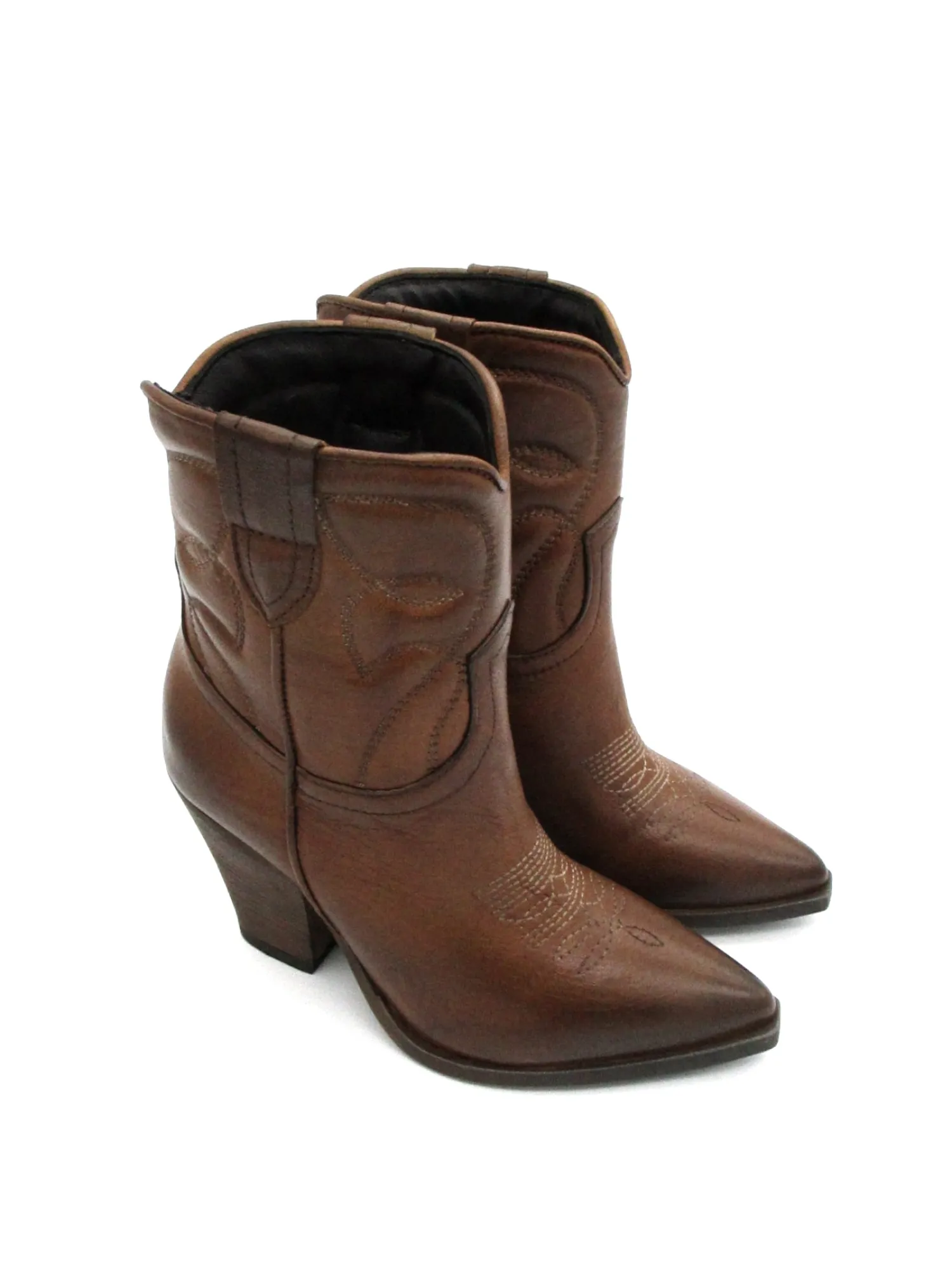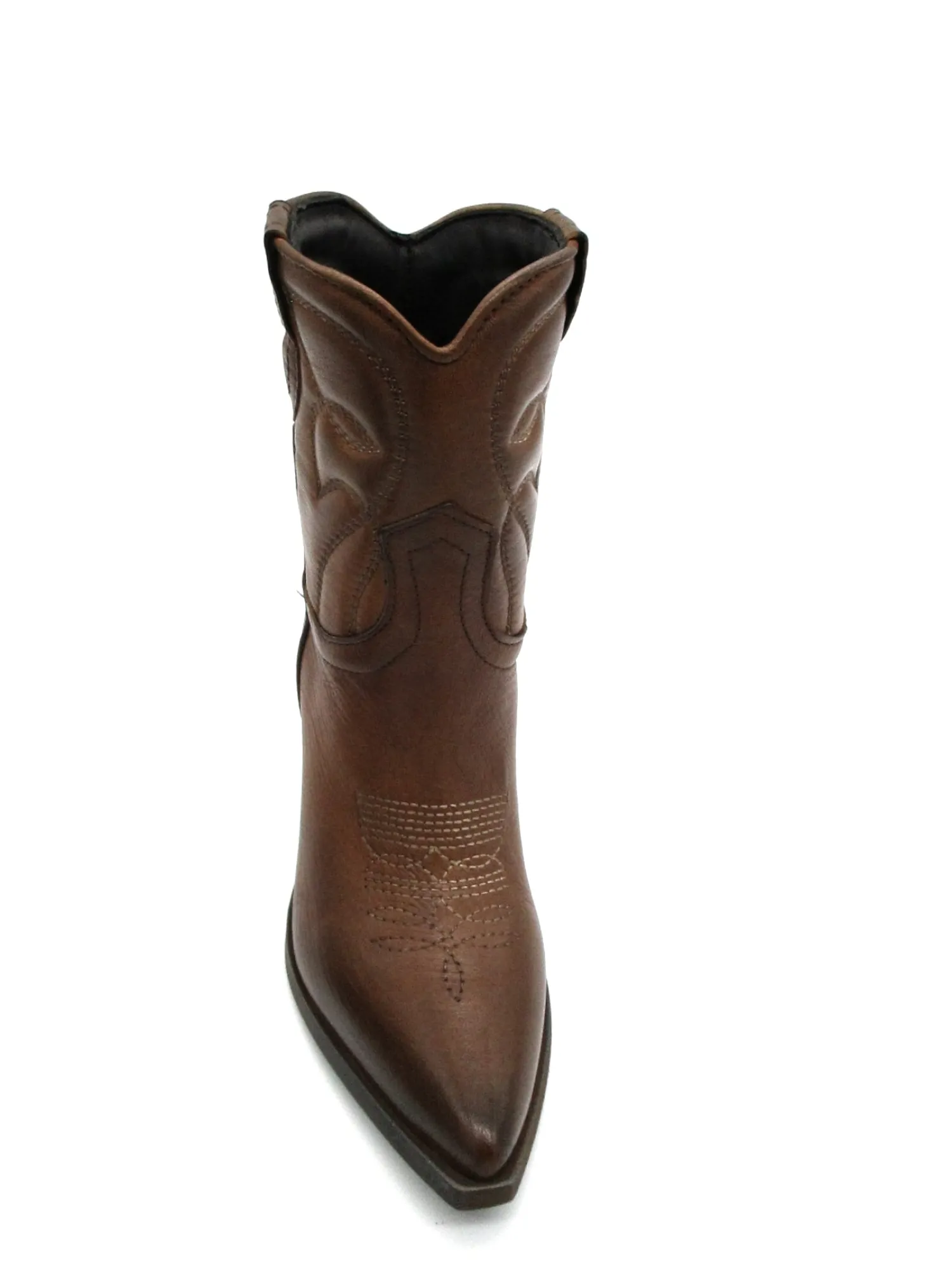 Texano pelle donna color Cuoio con impunture a contrasto, altezza tacco 8,5 cm e gambale 17 cm.