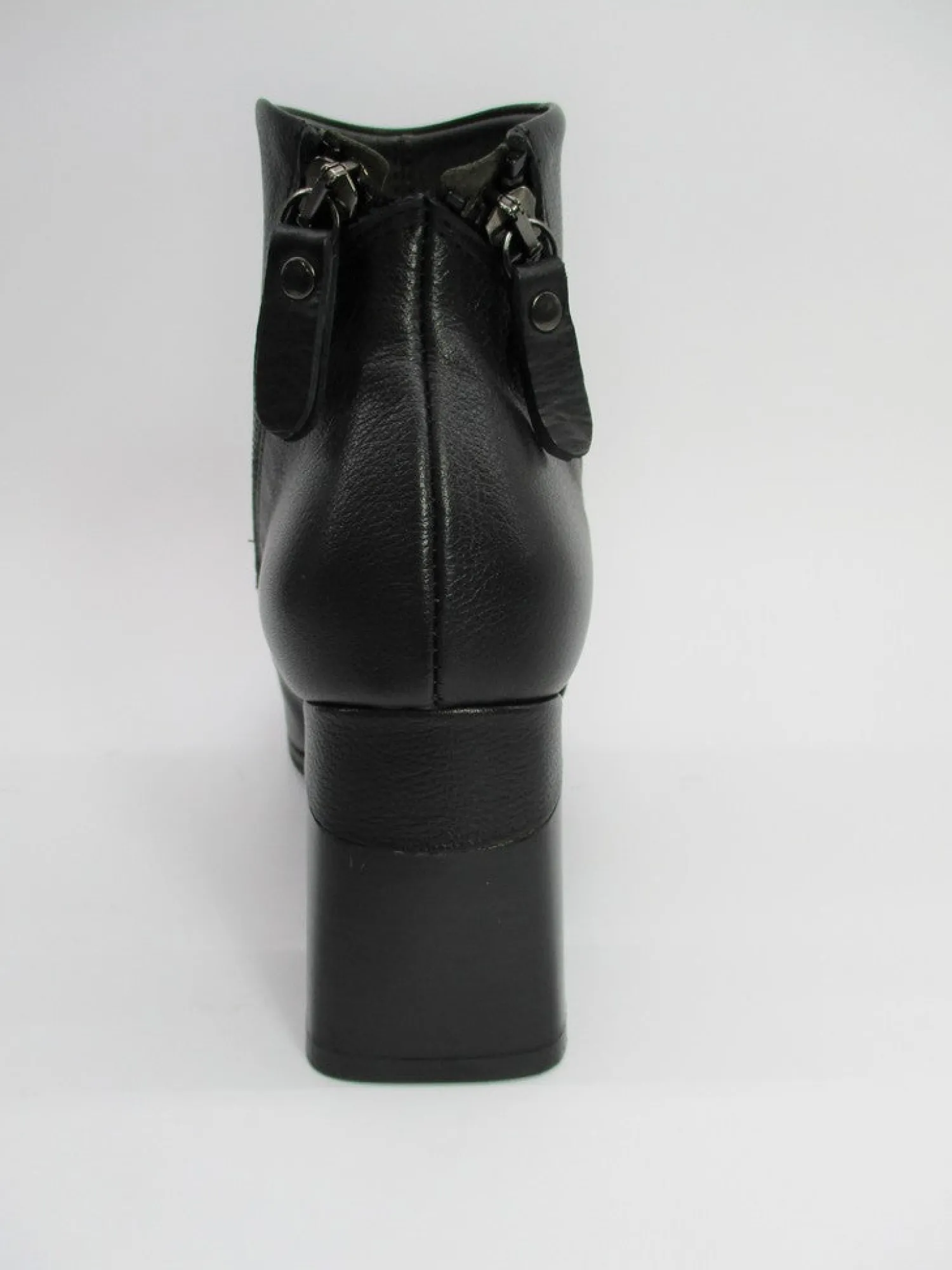 Stivaletto doppia cerniera tacco quadro 9cm Colore: nero Materiale: pelle