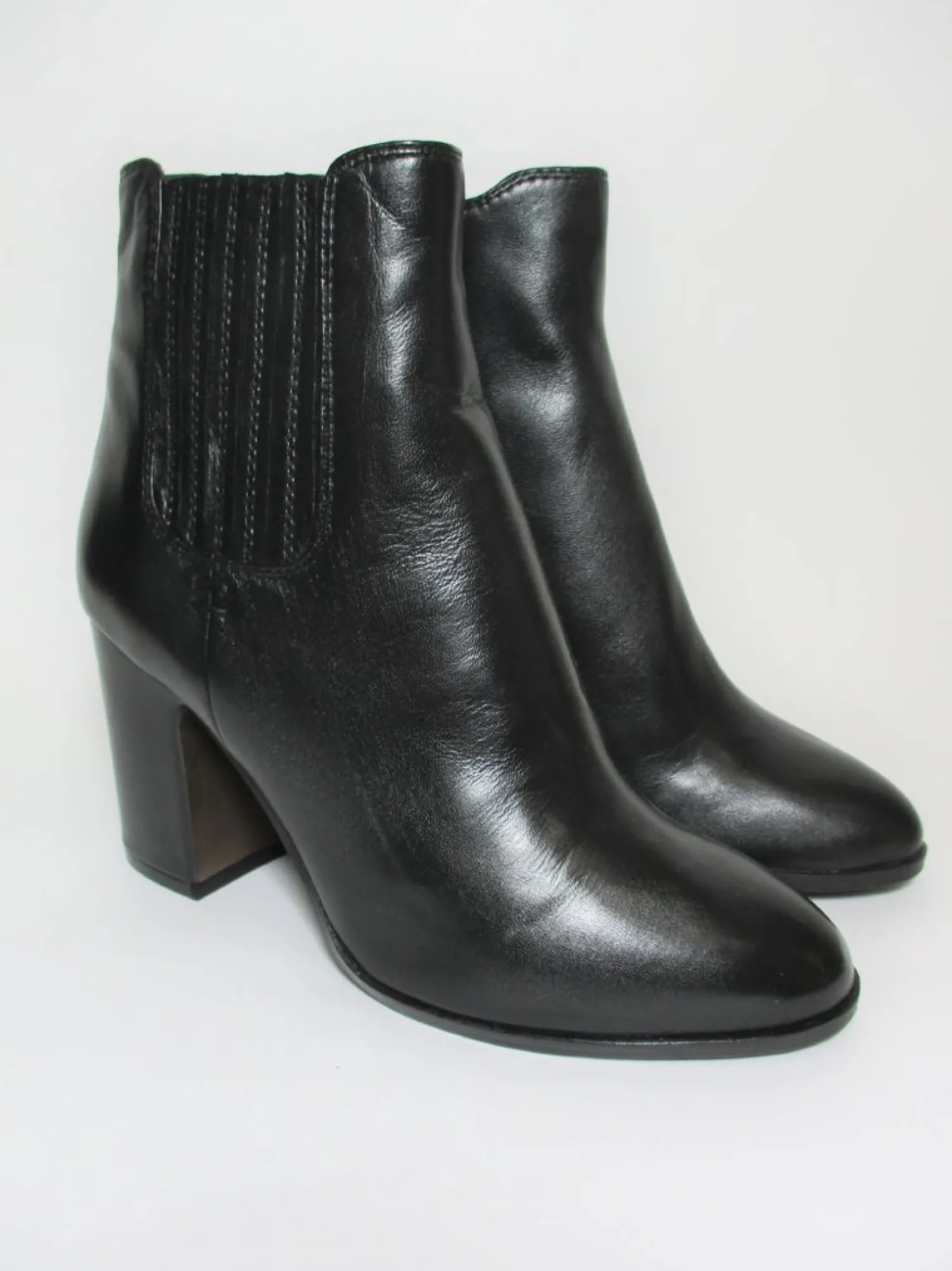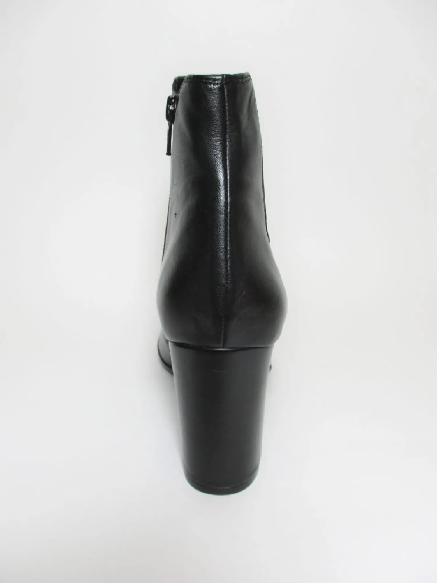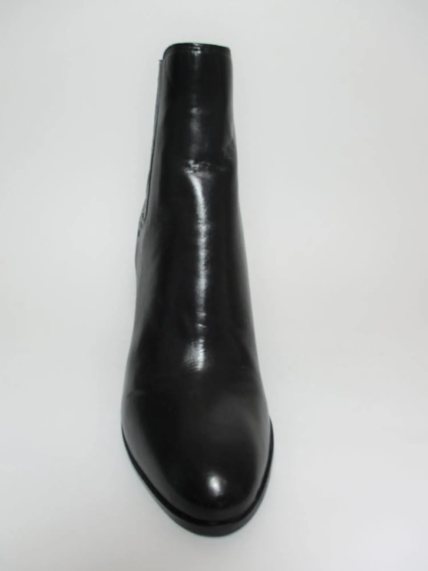 Tronchetto in pelle con elastici laterali modello beatles .Tacco rivestito con altezza 8 cm .Colore nero .